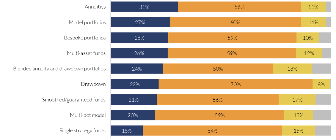 “There has to be some flexibility,” says Squirrell. “Flexibility in terms of what can be done with the investments but also in terms of what can be done in terms of drawing income.” “For example, if I want to give up work at 60, my state pension does not kick in for seven years – that in itself is a non-linear approach.” In such cases, he suggests clients may need to draw more income early on and adjust later when other income sources begin. Rather than drawing taxable pension income immediately – which can trigger the Money Purchase Annual Allowance (MPAA) and restrict future contributions – he suggests retirees may want to access the tax-free elements of the pension, “whilst allowing the rest to continue to grow and not preventing further contribution.” Blended solutions offer another level of adaptability. “If I did buy an annuity within a drawdown arrangement, then I’d have the ability to flex the income and deal with the taxation,” he explains. “The one thing to not dismiss is the power of blending the two – blending guarantees with the flexibility.” “A high percentage of people want guarantees of income but almost the same percentage of people want flexibility. It doesn’t have to be binary.”
