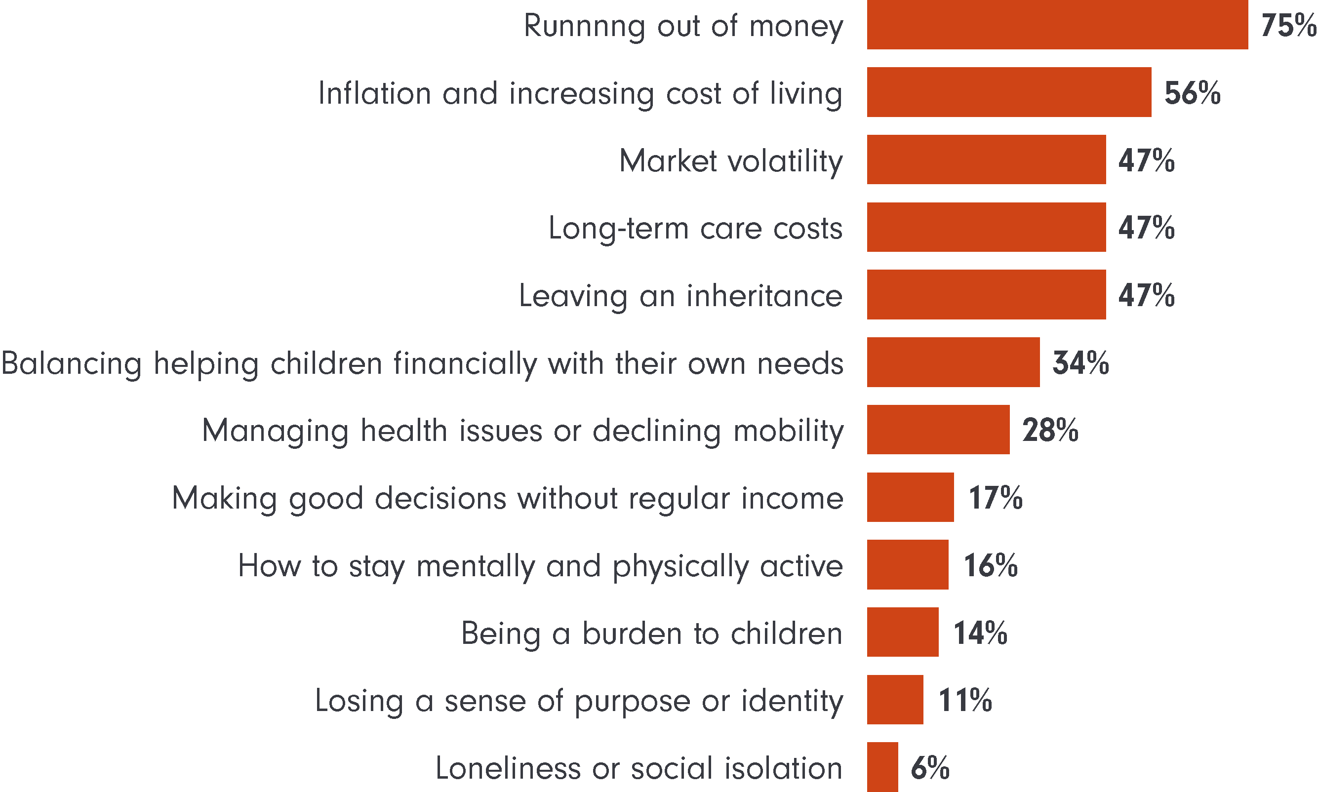 Technology is an enabler of this agility: cashflow tools let advisers stress-test plans, model trade-offs and visually demonstrate the impact of decisions. AI is moving from experiment into practice. Nearly one in five advisers (19%) implemented an AI tool in the past year, most commonly for meeting notes and summaries - freeing capacity for time with clients. Some firms are experimenting with AI to analyse communications, spot behavioural patterns and flag potential risks to income or investment outcomes. Uncertainty continues to dominate client conversations. Three-quarters (75%) of advisers report that clients approaching or in retirement are primarily concerned about running out of money. Yet advisers are often working with clients who are ‘under-living’ rather than over-spending. To address this, firms are leaning on modelling and visualisation tools to translate abstract scenarios into decision-ready insights.